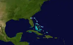 Die anfänglichen Prognosen gingen davon aus, dass sich das Tiefdrucksystem zum dritten tropischen Sturm des Jahres entwickeln würde.[17] Es verlor jedoch wegen ungünstiger Bedingungen in der Höhe und den Einfluss der Bahamas sein gut definiertes Zentrum. Nach den Angaben des National Weather Service erreichte das Tiefdruckgebiet Windgeschwindigkeiten von 80 km/h.[18]