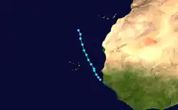 Das fünfte tropische Tiefdruckgebiet des Jahres im atlantischen Becken bildete sich am 20. August in der Nähe der Kapverden. Zu diesem Zeitpunkt wurden bereits heftige Regenfälle und Winde bis zu 54 km/h registriert. Die Depression driftete die nächsten drei Tage nordnordwestlich der Inseln, ohne sich wesentlich zu entwickeln.