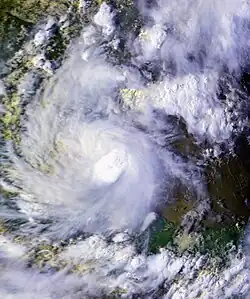 | Intensität | 55 kn (100 km/h) (1-minütig), 994 hPa | ||