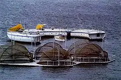 Schon im folgenden Sommer wurde die Badeinsel nicht mehr gut besucht, sodass sie nach Eckernförde gebracht werden sollte. Kurz vor dem Schlepptermin zerstörte ein Wintersturm die Verankerung, ließ das Element mit dem Restaurant versinken und spülte die Badeinsel an den Strand vor dem Maritim Travemünde, wo sie zehn Monate lang liegen blieb.[3] Schließlich wurde sie der Universität Kiel übergeben, die sie als Fischzuchtstation für Forschungszwecke in der Kieler Förde nutzte. Durch neue Fenster, die an der Unterseite eingebaut wurden, war es möglich, Heringsschwärme zu beobachten. Diese Nutzung dauerte bis Mitte der 1990er-Jahre an.