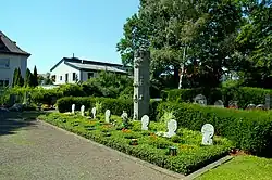 Die acht verstorbenen Kinder erhielten auf dem alten Friedhof in Weiler eine gemeinsame Ruhe- und Gedenkstätte. Am 20. Juni 1964 nahmen vor der Beisetzung der ersten vier verstorbenen Kinder mehr als 2000 Menschen an einem Requiem teil, das der Kölner Erzbischof Josef Kardinal Frings in der kleinen Kirche St. Cosmas und Damian hielt. Die Zahl der Trauergäste überstieg das Fassungsvermögen der Kirche, so dass viele Menschen die mit Lautsprechern nach draußen übertragene Messe im Regen verfolgen mussten.[15] Am 20. Juni 1969 wurde an den Gräbern ein Denkmal des Kölner Bildhauers Elmar Hillebrand aufgestellt, eine Säule, auf der von Flammen umschlungene Blätter dargestellt sind.[16]