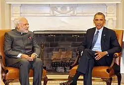 Seit dem Ende des Kalten Krieges haben sich die Beziehungen zwischen Indien und den USA dramatisch verbessert. Die Liberalisierung der indischen Wirtschaft ermöglichte einen vertieften wirtschaftliche Austausch und auch die politischen Beziehungen entwickelten sich gut, besonders in der Amtszeit von Narendra Modi.[35] In den USA leben über vier Millionen indische Amerikaner, die eine wirtschaftlich und politisch zunehmend einflussreiche Gruppe sind.[36]