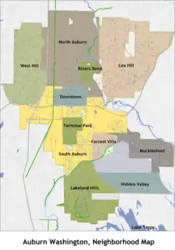 Auburn ist eine Stadt im US-amerikanischen Bundesstaat Washington. Es befindet sich zum größten Teil im Süden des King County, das Stadtgebiet reicht jedoch bis in das Pierce County hinein. Zum Zeitpunkt des United States Census 2000 hatte Auburn 40.314 Einwohner; durch spätere Annektierung von West Hill und Lea Hill in der Umgebung[2] ist die Einwohnerzahl seitdem stark gestiegen. Bei der US-Volkszählung von 2020 lag sie bereits bei 87.256 Einwohnern.[3] Die Stadt lag 2008 nach Einwohnerzahl innerhalb Washingtons an 13. Stelle, musste diese jedoch an Kennewick abtreten und liegt nun auf Rang 14, jedoch mit einem starken Bevölkerungswachstum.[4]
