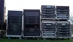 Endverstärker für große Bühnen und Diskotheken wandeln oft elektrische Leistungen im Kilowattbereich (ca. 1…6 kW). Es sind Transistor- oder MOSFETverstärker in Gegentakt- oder Vollbrücken-Schaltung (siehe Verstärker (Elektrotechnik)). Um bei hohem Strom den Spannungsabfall in den Endtransistoren zu reduzieren (proportional zur Verlustleistung), hat man sogenannte Klasse G oder -H Verstärker entwickelt (klassische AB-Verstärker mit gestockter Betriebsspannung bzw. Längsvorregler in den Betriebsspannungszweigen) und damit einen Wirkungsgrad von bis zu 80 % erreicht. Auch Klasse-D-Verstärker setzen sich im PA-Bereich langsam durch, obwohl eine weitere Wirkungsgradverbesserung durch den D-Betrieb mit Nachteilen verbunden ist, die hauptsächlich in der Störaussendung, Intermodulationsverzerrungen und in Schaltverlusten der Treiberstufe liegen.