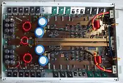 Immer häufiger werden aufgrund des hohen Wirkungsgrades (kleine Bauweise) Schaltverstärker gebaut. Sie werden auch als Klasse-D-Verstärker oder etwas unzutreffend als Digitalendstufe bezeichnet und erzeugen das Nutzsignal mittels pulsweitenmodulierten Rechtecksignalen und nachfolgender Filterung mittels eines LC-Tiefpasses.