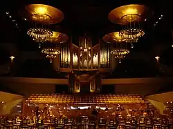 Der symphonische Saal ist nach Vorbild des Großen Saals der Berliner Philharmonie als Weinberg ausgeführt, bei dem die Zuschauerränge um die Bühne herum angeordnet sind. Die für den Chor bestimmten Bereiche können bei rein symphonischen Werken vom Publikum besetzt werden, was die Kapazität des Saals erhöht. Auf der Bühne haben bis zu 130 Personen Platz.[2] Der Saal ist zudem mit einer Orgel von Gerhard Grenzing ausgestattet, die 5750 Pfeifen hat und inkl. Transmissionen über 84 Registerzüge verfügt.[3]