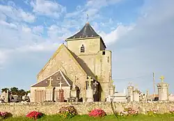 Die Kirche Saint-Jean-Baptiste[10] liegt landeinwärts am östlichen Ortsrand. Sie wurde im zwölften Jahrhundert erbaut. Der erhöhte Standort, von dem man den Sonnenuntergang im Meer beobachten kann, sollte ein Zeichen setzen gegenüber dem Paganismus, der durch die Wikinger wiederbelebt wurde. Die Kirche steht mitten in einem weiten Kreis germanischer Kultstätten, deren Götter den umliegenden Orten ihren Namen gaben: Audinghen von Odin, Tardinghen von Thor, Loquinghen von Loki.