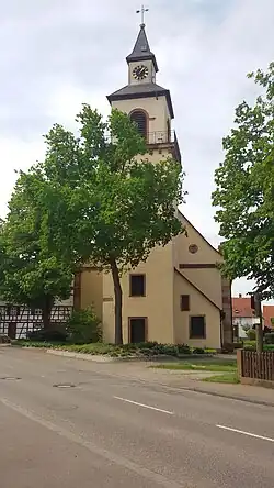 Auenheim hat eine evangelische Kirchengemeinde. Das Kirchengebäude wurde zuletzt 1792 neu erbaut. Die vorherigen Kirchenbauten an gleicher Stelle gingen ins 10. bis 12. Jahrhundert zurück.[11]