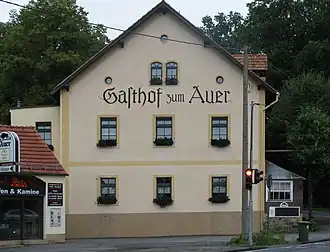 Noch im gleichen Jahr wurde es durch einen Neubau namens „Auer“ ersetzt, der weiter südöstlich direkt an der Straßenkreuzung liegt und ebenfalls eine Schankwirtschaft beherbergte. Im Jahre 1904 wird der „Auer, Gasthaus und Schneidemühle, zu Eisenberg/Moritzburg“, genannt, 1875 und 1908 das „Auerhaus (Auer)“. Die Bezeichnung „Auer“ findet sich alleinstehend 1911. Sie ging in den 1920er und 30er Jahren von der Gaststätte auf die damals im nahen Umkreis entstehenden Einfamilienhäuser über, der Ortsname bedeutet also „Siedlung am Auer(ochsen)garten“.