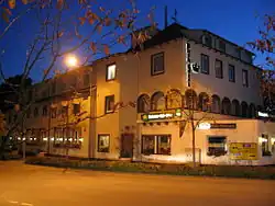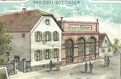 1859 wurde die Brauerei W. Schweikert in der Darmstädter Straße gebaut.[45] Nach einigen Besitzerwechseln; Brauerei Heinrich Böttinger, Brauerei Jean Gehrig, Böttingers Brauerei Jean Gehrig; wurde sie 1920 geschlossen. In dem Brauereisaal befand sich dann bis 1965 das Kino Deutsche Lichtspiele, kurz DELI genannt. Von der Brauerei ist heute noch die Gaststätte Zum Holzwurm mit dem Biergarten zu sehen.
