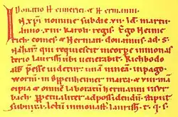 - ↑ Minst, Karl Josef [Übers.]: Lorscher Codex (Band 3), Urkunde 1539, 9. März 785? – Reg. 2846. In: Heidelberger historische Bestände – digital. Universitätsbibliothek Heidelberg, S. 250, abgerufen am 11. März 2016.