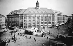 Der Moritzplatz wurde zu Beginn des 20. Jahrhunderts zur Verkörperung der Urbanität erschaffen. Das große Warenhaus Wertheim hatte hier seinen Stammsitz. Auf der südöstlichen Seite des Platzes, wo die Prinzessinnengärten angesiedelt sind, beherrschte das Kaufhaus, das der Architekt Eugen Schmohl entwarf und 1913 fertigstellte, mit 27 breiten Fensterachsen den Platz. Auf der gegenüberliegenden Straßenseite – dort, wo nunmehr das Aufbau Haus steht – hatte sich eine der größten Gast- und Vergnügungsstätten niedergelassen: Die Bierquelle Aschinger AG mit Konzerthalle und angrenzendem Theater.