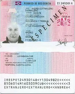 In Spanien wird die Permiso de residencia expedido a nacionales de terceros países (Aufenthaltstitel für Drittstaatsangehörige) nach einheitlichem Muster ausgestellt.[6]