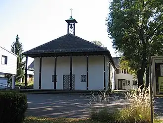 Das einfache rechteckige Gebäude ist mit einem Walmdach bedeckt, das über der Eingangsfront weit vorspringt und dort von sechs Stützen getragen wird, so dass eine Art offene Vorhalle entsteht. Der schlichte Saalbau mit fünf Fensterachsen strahlt durch die Holzverkleidung im Innern eine besonders heimelige Atmosphäre aus. Im vorderen Bereich ist im rechten Winkel das Gemeindehaus angebaut. Auf dem Dachfirst im hinteren Teil der Kirche sitzt ein kleiner Dachreiter, in dem eine Glocke hängt.
