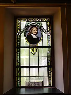 Mehrere in Karlsruhe tätige Künstler waren für die Inneneinrichtung und die Malereien verantwortlich. Die großformatigen Glasmalereien in der Kirche über den Emporen haben die Reformation zum Thema. Die Werke tragen die Bezeichnungen „Luther auf dem Reichstag zu Worms“ und „Luther und Melanchthon erklären die Bibel“. An der Stirnseite der Kirche sind Szenen aus dem Leben von Jesus zu sehen. In der Kirche befinden sich Figuren des Alten und Neuen Testaments, der Reformation, der Rüppurrer und der badischen Geschichte. Ungewöhnlich sind einige Darstellungen von Personen der neueren Geschichte, die in einer Kirche nicht alltäglich sind. Bei diesen Darstellungen handelt es sich um Großherzog Friedrich I., Otto von Bismarck und Kaiser Wilhelm I., die auf Grund ihrer politischen Bedeutung ihren Platz hier fanden. Sie stehen für die konservative und deutschnationale Politik sowie die Verbindung von „Altar und Thron“. Die insgesamt 19 Bildfenster stammen vom Karlsruher Glasmaler Hans Drinneberg und sind heute wieder im originalen Zustand.
