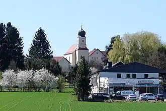 Das Kirchdorf Aufhausen liegt in der Hallertau etwa zwei Kilometer südlich von Mainburg in der Nähe der Bundesstraße 301.