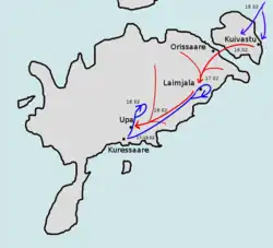 Relativ schnell wurde den Aufständischen von Kuressaare aus ein kleiner Verband regierungstreuer Truppen entgegengeschickt, der sich am 17. Februar bei Laimjala ein Gefecht mit den Aufständischen lieferte. Gleichzeitig wurde die Provisorische Regierung informiert und um Hilfstruppen gebeten. Diese trafen am 18. Februar ein und schlugen den Aufstand am 19. Februar auf Muhu nieder. In der Folge zogen sie weiter nach Saaremaa, wo sich die Aufständischen inzwischen auf die Einnahme von Kuressaare vorbereiteten. In verschiedenen Kämpfen am Rande von Kuressaare wurden die Aufständischen von den Regierungstruppen am 21. Februar bezwungen, womit der Aufstand endete. Insgesamt geht man auf der Seiten der Aufständischen von 163 Opfern aus, von denen die Hälfte in den Kampfhandlungen umkam, während die andere Hälfte nach Entscheidungen von Feldgerichten hingerichtet wurde.[6] Die totale Anzahl der Opfer wird heute mit annähernd 200 beziffert, da auch Zivilisten umgebracht wurden.[7]