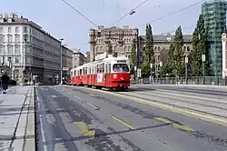 Im September 1927 beschloss das Wiener Stadtbauamt unter Stadtbaudirektor Franz Musil (1884–1966) den Neubau der Augartenbrücke.[4] In diesem Zusammenhang wurde überlegt, die Augartenbrücke von der Maria-Theresien-Straße (einem Teil der „Lastenstraße“ genannten Route für Lastwagen, die auf der Wiener Ringstraße nicht fahren durften) zum Schottenring zu verlegen; im Interesse des Lastwagenverkehrs wurden diese Überlegungen aber nicht weiter verfolgt.