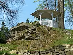 Die „Wachende Jungfrau“ ist als Felsformation Teil des Schlossparks. Der Sage nach wartete hier eine Ritterstochter vergebens auf die Rückkehr von Vater und Bräutigam. Im Sockel des angrenzenden Pavillons ist ebenfalls das Gestein mit dem markanten Gefüge gut erkennbar.