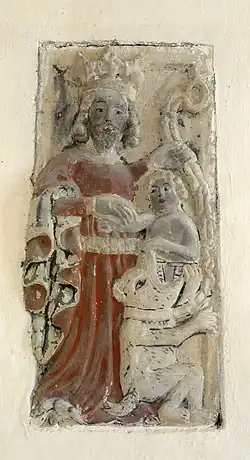 - Das Grab des hl. Simpert:[10][11] Die Gebeine des hl. Simpert wurden in der Kapelle der hl. Afra begraben, als die Hunnen diese zerstörten, wurden die Knochen jedoch zerstreut. Der hl. Ulrich soll sie wieder aufgesammt haben und sie feierlich bestatten lassen. Bei seinem Grab sollen viele Wunder geschehen sein. So hat etwa einmal eine Wölfin in der Nähe von Augsburg ein Kind in ihrem Rachen mit sich fortgetragen. Die Mutter des Kindes bat an dessen Grab um Hilfe und wenige Stunden danach geschah es tatsächlich, dass die Wölfin wieder erschien und das Kind unverletzt zurückgab.