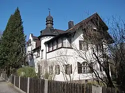 Der hintere Teil der Villa mit einem quer gestellten, geschwungenen Giebel wurde bereits 1902 durch den Architekten Georg Völkl angefügt.