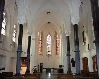St. Josef | Neubau | als Privatkapelle geplant; Kreuzbasilika mit dreischiffigem Quer- und Langhaus, sechseckiger Treppenturm an der Südseite des westlichen Mittelschiffjochs; 1953 erweitert[1]:300 ff. | |