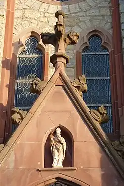 St. Johann Baptist | Neubau einer Pfarrkirche | Bauverzögerung durch Finanzierungsschwierigkeiten und Ausbruch des Deutsch-Französischen Kriegs, Einsegnung 1870, 1874 noch ohne Innenausstattung (Orgel, Kirchenstühle, Chorgestühl), Zerstörung im Zweiten Weltkrieg, Wiederaufbau in veränderter Form[1]:99 ff. | |