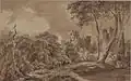 August Matthias Hagen arbeitete hauptsächlich an Stadt- und Landschaftsansichten in Sepia, Aquatinta und Mischtechnik. Motive der Alpen und das Werk Caspar David Friedrichs übten großen Einfluss auf ihn aus.[3] In Hagens Werk verschwimmen die Einflüsse der klassizistischen Ideallandschaften mit der Romantik.