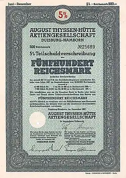 1934 wurde sie als Betriebsgesellschaft der Vereinigten Stahlwerke AG wieder gegründet, in die die Duisburger Hütten der Vestag eingebracht wurden. Ab Dezember 1936 beteiligte sich die Gesellschaft als Gründungsmitglied an der Gelsenberg-Benzin AG, die ab 1939 synthetische Kraftstoffe aus Steinkohle herstellte.[1]