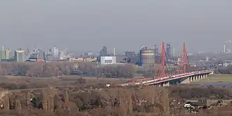 Die Flachstahlproduktion wurde weiter ausgebaut, um der steigenden Nachfrage auch aus der prosperierenden Automobilindustrie gerecht zu werden: Nach der Stilllegung der Zeche Beeckerwerth standen zwischen Beeck und Beeckerwerth, entlang des Rheins, westlich der bisherigen Anlagen in Bruckhausen, eine riesige Fläche zur Verfügung. Die Ausbaumöglichkeiten in Bruckhausen waren begrenzt, der Stadtteil Alsum wurde, bereits im Krieg großflächig zerstört, komplett abgetragen, sodass ein weiteres Wachstum dort nicht mehr möglich war. Die Fläche in Beeckerwerth konnte zur Gründung des „Werks im Grünen“ genutzt wurden. Im neuen Werksteil Beeckerwerth wurde erstmals auch ein Stahlwerk nach dem neuen, modernen Linz-Donawitz-Verfahren errichtet. Der Bau begann 1959/60, das LD-Stahlwerk wurde 1962 in Betrieb genommen, zwei Jahre später wurde der Werksteil Beeckerwerth um eine Blockbrammenstraße, Warm- und Kaltbreitbrandstraße und 1965 um eine weitere Sendzimir-Verzinkungsanlage ergänzt.[19] Da durch den Ausbau der Kapazitäten in Beeckerwerth auch der Roheisenbedarf stieg, wurde in Bruckhausen schließlich mit dem Bau von Hochofen 11 begonnen, der 1962 angeblasen wurde. Der Hochofen 11 (heute: Hochofen 9) ist bis heute in Betrieb und war der zweite Großhochofen der ATH, mit einer Tagesleistung von 2.100 t Roheisen. Ein weiterer Großhochofen folgte 1964 nach (Hochofen 6, später 4), der aufgrund des Anblicks über die Dieselstraße in Bruckhausen deutschlandweite Bekanntheit in den Tatort-Folgen von Götz George als Horst Schimanski erlangte.[20] Auch die Mitarbeiterzahl wuchs stetig an: Mit 16.800 Mitarbeitern war das Werk im Duisburger Norden, bestehend nun aus den Werksteilen Bruckhausen und Beeckerwerth, im Jahre 1966 das größte Hüttenwerk Europas, eine Eigenschaft, die die Hütte bis heute beibehält.[21] Im Rekordjahr 1964 wurden insgesamt rund 4,2 Mio. t Rohstahl erzeugt.[22]