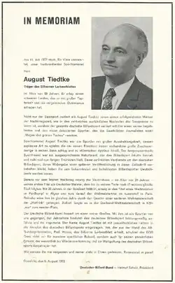 - ↑ a b Unpolitisch: Der Billardspieler August Tiedtke. In: Sabine Gerasch: Geschichte vom Band. 1. Auflage. de Gruyter, 1997, ISBN 3-11-015274-6, S. 154–162.