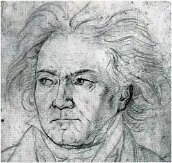 Das Beethoven-Porträt entstand im Sommer 1818 in Döbling bei Wien als Doppelporträt des Komponisten und seines Neffen und wird als äußerst gelungen beschrieben. Es entstand im Auftrag von Kloebers Schwager, Johann Freiherr Skrbenský von Hříště (1768–1822), für dessen Schloss in Schönhof. Das Schloss wurde 1927 abgetragen, das Porträt ist verschollen; es existiert auch keine Abbildung. Erhalten sind Kloebers Entwurf von Beethovens Kopf und seinen Händen. Daneben ist die Skizze des Kopfs – unter Kloebers Aufsicht – mehrfach lithographiert worden.[1]