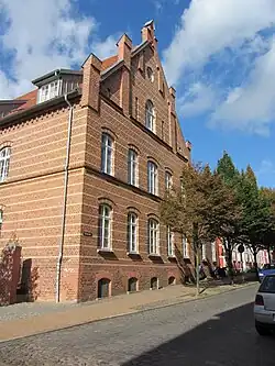 Das zweigeschossige neugotische Bauwerk mit einem nördlichen Querhaus mit Rundbogenfenstern und Eingang hatte 1860 der Architekt Hermann Willebrand entworfen. Die Rotsteinfassade an der Feldstraße wird gegliedert durch gelbe Klinkerbänder, den dreistufigen Treppengiebel des Querhauses und die eingeschossigen Pfeilervorlagen. Die Schädigungen im Dachbereich wurden saniert. Der geschädigte Giebel zur Feldstraße konnte in der früheren Form wiederaufgebaut werden, einschließlich der Bekrönung im Giebelfirst. Das historische Treppenhaus, die Dreifüllungszimmertüren, die bleiverglasten Schmuckfenster und der neugotische Windfang blieben erhalten. Eine Terrasse und der Balkon zur Hofseite am Giebel mit einer Art Giebelreiter erhöhen die Aufenthaltsqualität.