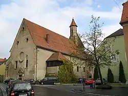 Die Augustiner-Eremiten-Kirche mit Kloster wurde ab 1395 erbaut und 1542 von den Augustiner-Eremiten verlassen. Danach war die Kirche als landschaftliche Zeugkammer in Verwendung. 1614, vermutlich im Zuge der Gegenreformation wurden Kirche und Kloster den Kapuzinern übergeben. Das Kapuzinerkloster wurde 1817 unter Josef II. säkularisiert. Seitdem wird die Kirche als Weinkeller und das Kloster als Kaserne genutzt. Weil die Kirche in den 1850er Jahren als Theater genutzt wurde, wurde die Gasse an der Westfront Theatergasse benannt. Das Klostergebäude wurde 1940 für die Errichtung einer Südtiroler-Siedlung demoliert.