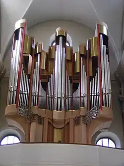 Die Hauptorgel und die Chororgel wurden in den Jahren 1995/1996 von der Orgelbaufirma Klais (Bonn) erbaut: die Hauptorgel mit 54 Registern auf drei Manualen und Pedal, die Chororgel mit 14 Registern auf zwei Manualen und Pedal. Die Chororgel ließ sich vom Spieltisch der Hauptorgel aus anspielen (die beiden Manualwerke der Chororgel waren auf dem 4. Manual des Spieltisches der Hauptorgel registrierbar).[7]