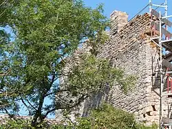 Die Burg wurde in der zweiten Hälfte des 13. Jahrhunderts auf der höchsten Stelle des Dorfzentrums errichtet. Der frühere Wohntrakt der Burg befand sich in unmittelbarer Nähe zur Pfarrkirche. Ein Dokument aus dem Jahr 1310 besagt, dass die Pfarrmitglieder die Burg durchqueren mussten, um zur Kirche zu gelangen. Die Burg wurde auf Befehl des französischen Königs Ludwig XI. geschleift, um Raymond de Cardaillac zu bestrafen, der sich auf die Seite seines Widersachers, des Herzogs von Berry, geschlagen hatte. Seitdem sind nur noch die westliche und die nördliche Mauer verblieben. Die Burgruine wird heute Les Crénaux (deutsch die Zinnen) genannt.
