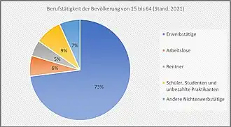 Die Arbeitslosigkeitsrate der Gemeinde beträgt 6,6 % (Stand: 2021). Damit liegt sie niedriger als die entsprechende Quote des Départements 8,6 %[7] und die von France métropolitaine 8,8 %.[8]