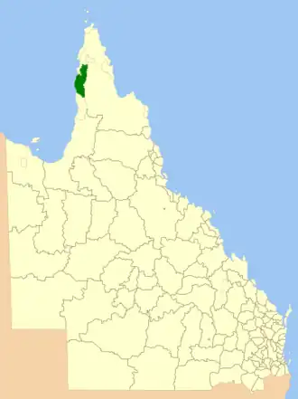 Das Shire liegt im Norden des Staats an der Westküste der Kap-York-Halbinsel zwischen dem Embley River im Norden und dem Holroyd River im Süden.