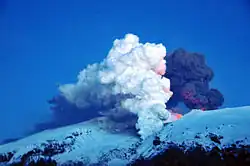 Am 22. März gegen 7 Uhr stieg eine Eruptionswolke von der Ausbruchsstelle bis in etwa 4000 Meter Höhe.[26] Am 23. März 2010 erreichte eine derartige Wolke 7000 Meter Höhe.[27]