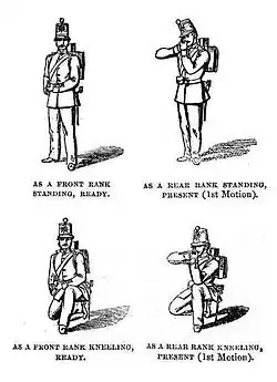 Die erste weithin eingeführte Feuerwaffe war für über 100 Jahre die Zündschloss-Muskete. Mit ihr war es möglich, extrem ungenau[1] auf etwa 90 m zwei bis drei Schuss pro Minute abzugeben. Die Waffen explodierten häufig beim Abfeuern, wodurch das Gesicht des Schützen schwer verletzt wurde. Im Rahmen der damals üblichen Taktik, Schießen auf eine aufgereihte Reihe von Gegnern, war sie noch bis zum Krimkrieg ausreichend. Die Soldaten bezeichneten sie meist als Brown Bess. Während der napoleonischen Kriege kam das India Pattern zur Verwendung, das zuerst von der ostindischen Kompanie für ihre Truppen eingeführt worden war.