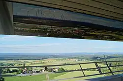 Die über 158 Stufen erreichbare oberste Aussichtsplattform bietet bei gutem Wetter einen Blick im Norden auf die beiden Basaltkegel Parkstein und Rauher Kulm sowie das Fichtelgebirge (mit Ochsenkopf und Schneeberg) und den Steinwald, im Osten auf den Oberpfälzer Wald und auf das Gebiet der tschechischen Republik, im Südosten auf den nördlichen Bayerischen Wald und im Westen auf die Berge des Oberpfälzer Jura, der Frankenalb und der Fränkischen Schweiz. Sogar der Arber ist bei guter Sicht im Südosten zu sehen.[7]