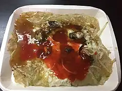 Das Austernomelett ist ein Gericht, das in Taiwan, China, Singapur, Thailand und vielen anderen asiatischen Ländern bekannt ist. Die wichtigsten Zutaten des Austernomeletts sind frische Pazifische Austern und Eier. Besonders ist, dass die Basis nicht nur aus Eiern, sondern zusätzlich aus einer Mischung von Wasser und Stärke, typischerweise von Süßkartoffeln, gemischt wird. Das Anping-Austernomelett ist einer der berühmten Snacks der taiwanesischen Stadt Tainan.