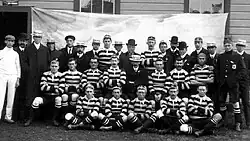 Europäische Einwanderer spielten schon sehr früh fußballähnliche Spiele, der erste Zeitungsbericht darüber erschien 1829 in Sydney. Die meisten dieser frühen Partien fanden im Rahmen lokaler Feste statt, wobei es keine klaren Regeln und keine kodifizierte Version gab. Die damals gespielten Varianten enthielten Elemente verschiedener heute existierender Regelwerke, darunter Australian Football, Fußball und Rugby. Trafen zwei Mannschaften aufeinander, mussten sie jeweils vor Spielbeginn die anzuwendenden Regeln festlegen. Welche Varianten in welcher Gegend vorherrschten, lässt sich nicht mehr nachvollziehen, zumal sie alle als football bezeichnet wurden.[11] Der erste Verein außerhalb des Mutterlandes Großbritannien, der kodifizierten Rugby-Regeln folgte (der weltweit achtälteste), war der im Jahr 1863 gegründete Sydney University Football Club, der am 19. August 1865 das erste offizielle Spiel organisierte.[12]