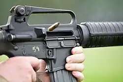 Bei manchen, vornehmlich militärischen, Gewehren befindet sich am Auswurffenster eine Staubschutzklappe. Somit soll verhindert werden, dass Staub, Sand und sonstiger Schmutz in die Waffe gelangt, wenn sich diese in Bereitschaft befindet. Die Klappe kann manuell geschlossen werden und öffnet sich automatisch, wenn sich der Verschluss nach hinten bewegt.[1]