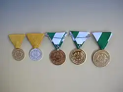 In der Geschichte der Auszeichnungen findet man auch solche, die auf Bezirksebene von den jeweiligen Feuerwehrkommanden verliehen werden, wie das Beispiel Oberösterreich zeigt.[1] Diese Feuerwehr-Verdienstmedaillen der Bezirke werden seit den 1970er Jahren verliehen und stellen bis heute eine Spezialität dieses Bundeslandes dar. Geschaffen wurden sie wohl als „Kompensation“ für die fehlende Auszeichnungsmöglichkeit durch den Landesfeuerwehrverband (siehe oben).