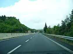 In einigen Fällen sind auch solche Straßen mit einer autobahnähnlichen Beschilderung versehen, bei denen die jeweils zweistreifigen Richtungsfahrbahnen lediglich durch durchgehende Doppelstreifen getrennt sind.
