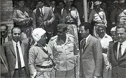 1958 endete die irakische Monarchie nach einem Militärputsch unter Abd al-Karim Qasim.[52] Seit 1958 definiert sich der Irak als Staat zweier Nationen – der Araber und Kurden.[53] Die Kurden im Nordirak unter Führung von Mustafa Barzani forderten Autonomie, was am 11. September 1961 zu einem Aufstand gegen die Zentralregierung führte. Zwei Tage danach folgten seitens der irakischen Regierung Bombardements auf das Dorf Barzan – Geburtsort von Mustafa Barzani. Vom 16. September bis zum 10. Oktober 1961 intensivierte die irakische Armee ihre militärische Offensive gegen die kurdische Widerstandsbewegung. In diesem Zeitraum wurde die Kurdische Demokratische Partei (KDP) am 23. September durch die Regierung formal aufgelöst. Mitte November bat Barzani die Vereinten Nationen um Hilfe. Iran leistete militärische Hilfe und lieferte Waffen und Munition.[48]