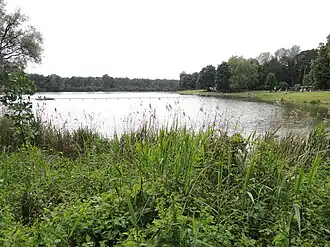 Am See liegen eine Gaststätte, eine Discothek, ein Minigolfplatz und ein eingezäunter Campingplatz. Liegewiesen, abgegrenzte Badestellen für Nichtschwimmer und ein Bootsverleih ergänzen das Angebot im Sommer.[2] Im Winter wird der See auch zum Schlittschuhlaufen und Eisstockschießen genutzt. Um den See ist ein Rundweg angelegt, auf dessen Nordseite diverse Spiel- und Fitnessgeräte aufgestellt sind; auf der Südseite informiert ein Waldlehrpfad über Themen der Waldwirtschaft.