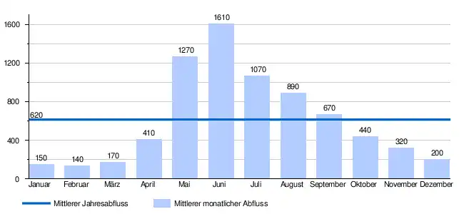 - ↑ Martin Pfaundler, Rolf Weingartner, Robert Diezig: „Versteckt hinter den Mittelwerten“ – die Variabilität des Abflussregimes. In: Hydrologie und Wasserbewirtschaftung (HyWa). Jg. 50, Heft 3, 2006, S. 116–123, hier Tabelle auf S. 119 (Download [PDF; 3,2 MB; abgerufen am 31. August 2020]). Abrufbar unter Gesamtes HyWa Heft 3, 2006..