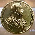 Don Carlo Cesare d'Avalos d'Aquino d'Aragona, Principe di Torrebruna, Duca di Celenza (1727–1810); ⚭ Donna Maria Teresa d'Avalos d'Aquino d'Aragona (1745–1820), Tochter von Don Diego d’A. d’A. d’A., Principe di Pescara, Vasto e Francavilla, Principe di Montesarchio, Troia e Vitulano, und der Eleonora d'Acquaviva dei Conti di Conversano